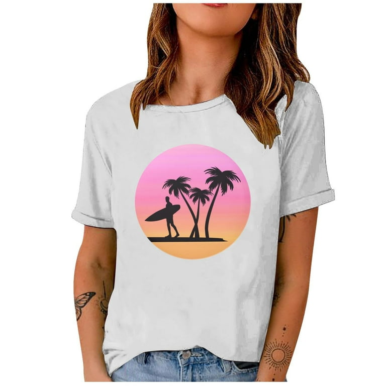 Source : www.facebook.comShort Sleeve Beach Tops Vintage Casual Tee Crewneck for Women 2024